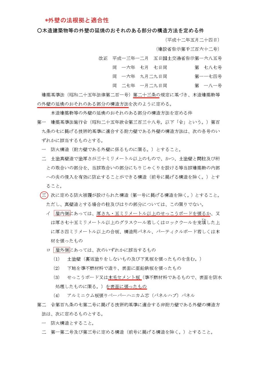 告示に記載されている幾通りかの仕様から、材と厚さ工法が合うものを選びます。