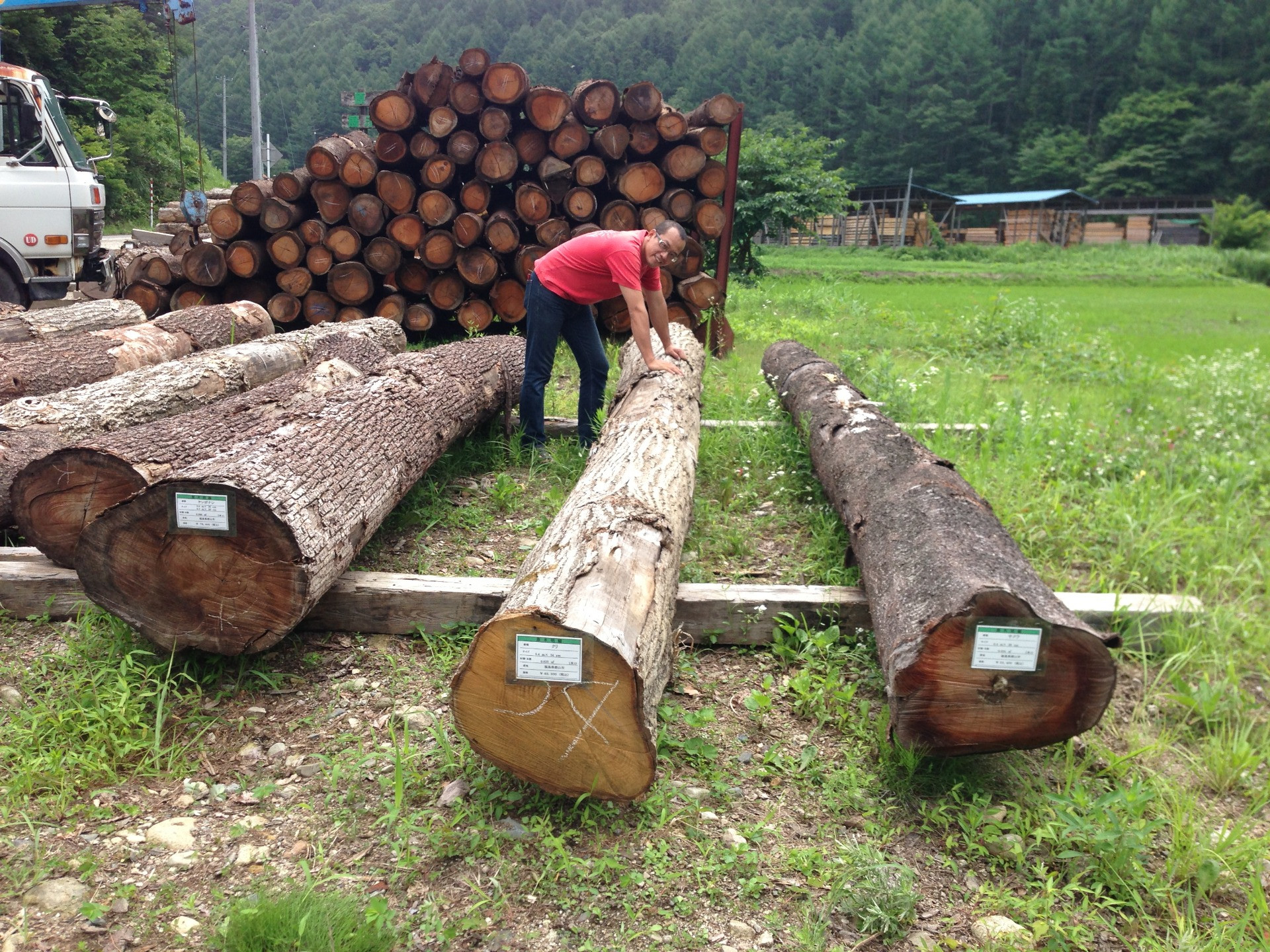 ご夫妻と大黒柱を探すツアーを慣行しました。お子さん達は親御さんに預けたそうで、一日にいくつかの材木問屋巡りをしました。