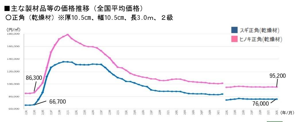 実際、上記の表より、国産の木材は、近代の経済や株価、物価高などに連動していない事がわかると思います。