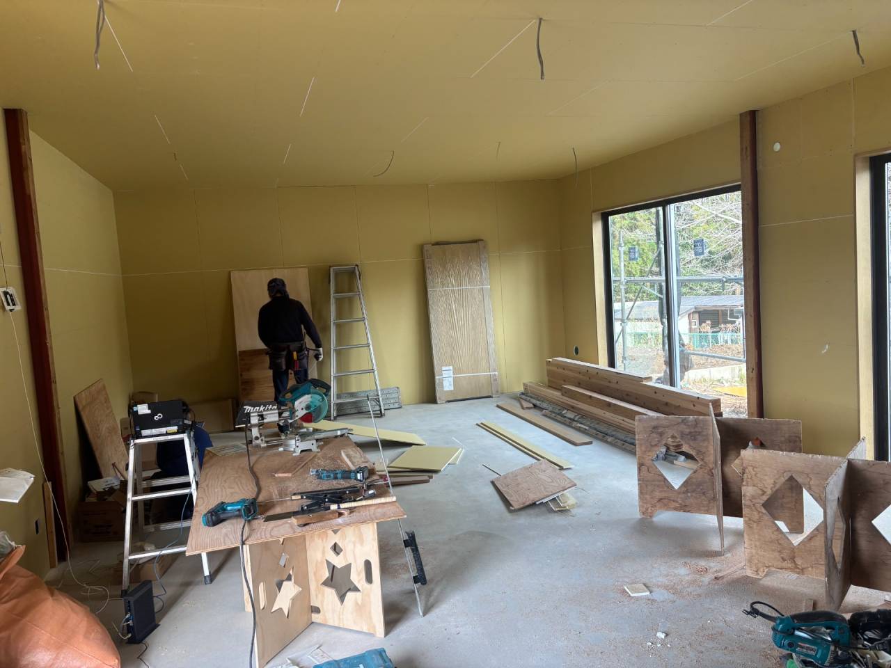 柱や梁の鉄骨は、当時の精度でよくある事ですが、水平、垂直が傾いており、木製の土台部や既存の外壁を構成した材の通りもボキボキ折れた状態でした。
