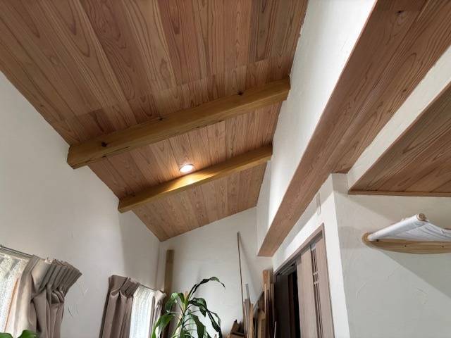 10㎡に満たない増築工事です。2024窓リノベ、子育て支援の国の助成金を活用し、更に市役所の助成金も活用しました。お施主様のご要望は既存の状態は冬は、床や壁の断熱性能が悪く、とにかく寒いとの事でした。奥様は、定年退職され工事に積極的に参加できる状態でしたので、床のフローリング張りや、腰壁を杉の羽目板で張る事など、積極的に工事に参加されたハーフビルドの工事でした。奥様は危ない工具などに臆する事なく、いろいろな工事を行われました。ペレットストーブ廻りの石張りやキャットウォークなども奥様がお一人で行われました。